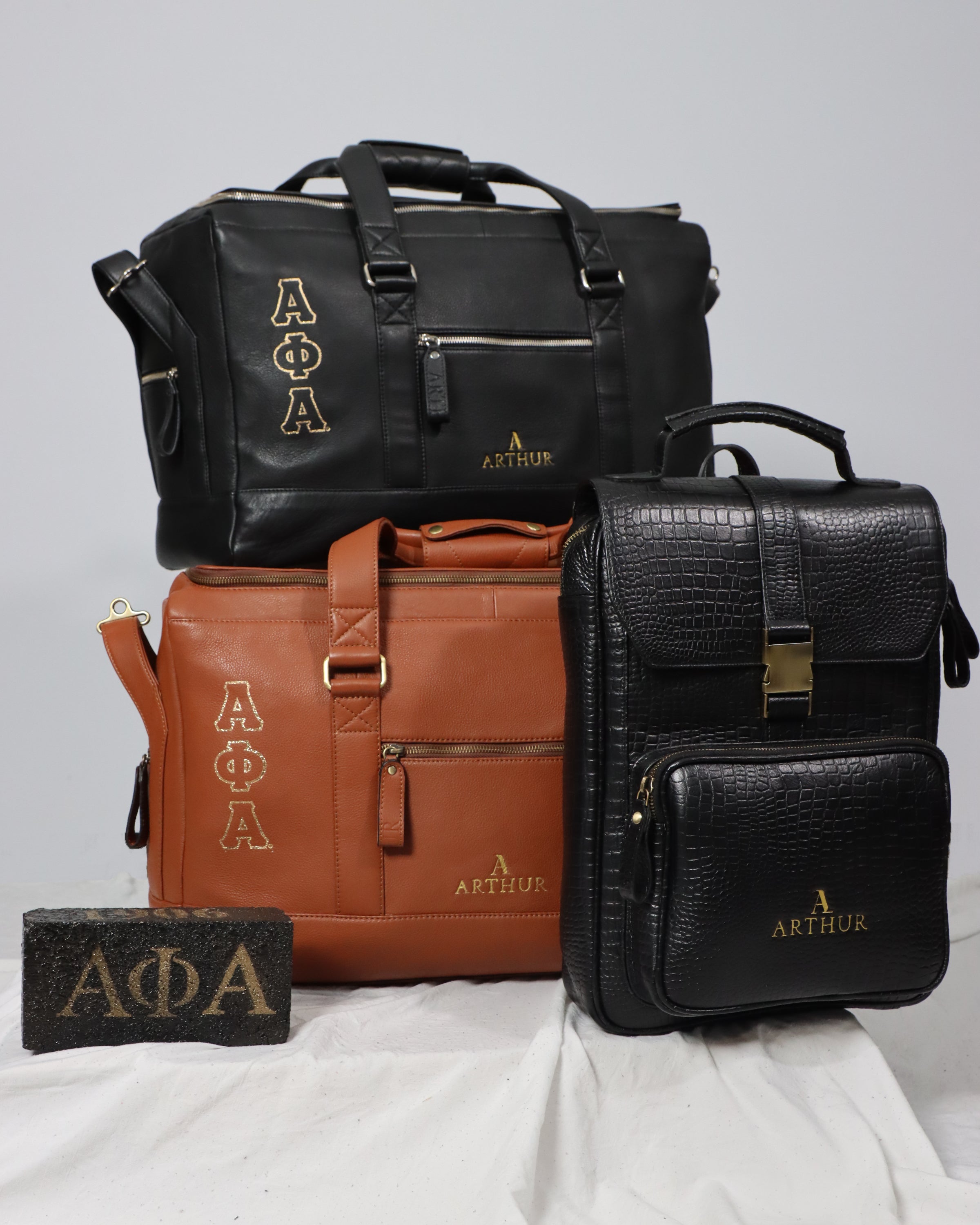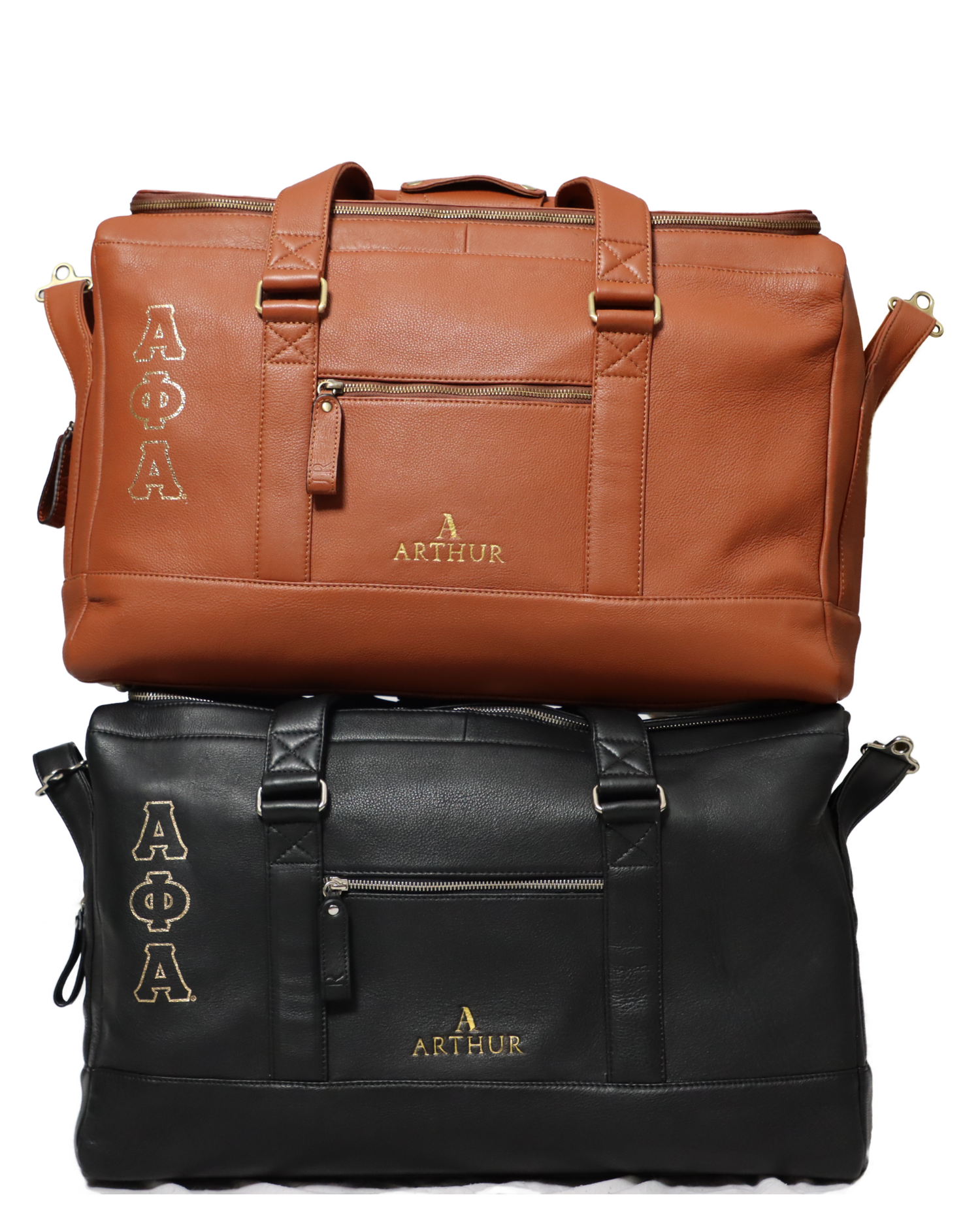 This refined duffel combines timeless style with practical functionality, featuring durable full grain leather and thoughtful compartments to keep you organized. Perfect for travel, it reflects the pride and legacy of your fraternity while offering sophisticated convenience.
